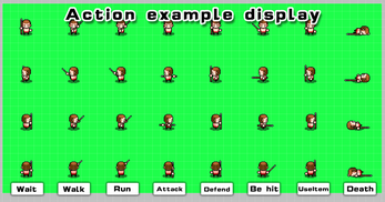 ■ Material introduction 15 characters. Each character has 8 sets of actions. This includes wait action, walk action, run action, attack action, defensive action, attacked action, use item action, death action.