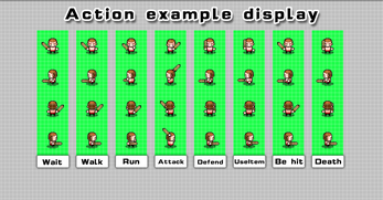 ■ Material introduction 15 characters. Each character has 8 sets of actions. This includes wait action, walk action, run action, attack action, defensive action, attacked action, use item action, death action.